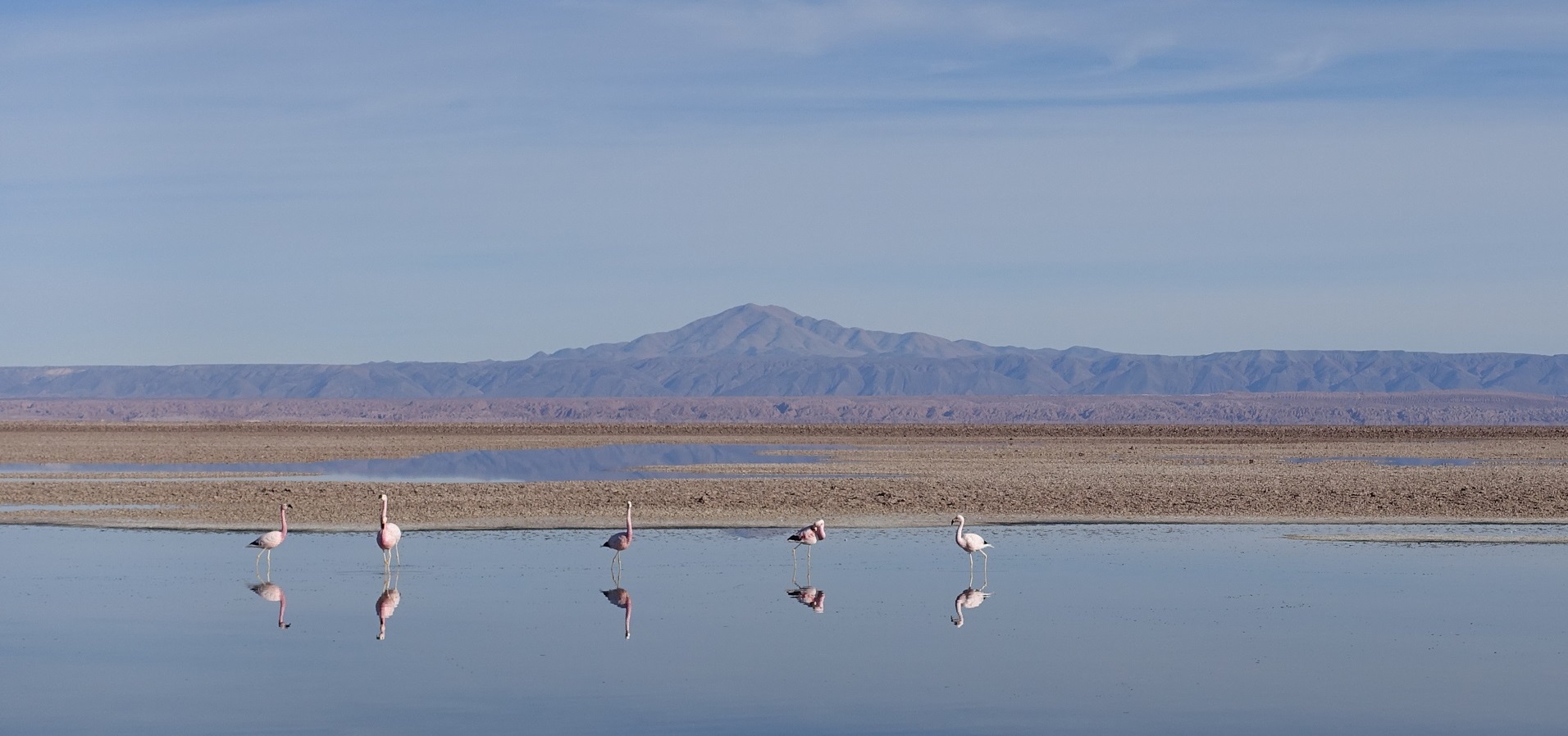 Next day we took a day-long tour to the mountain range next to the Argentina border. The whole journey already rewards with beautiful, varied scenery, from extremely dry plains to grasslands in different shades, all with stunning mountain panorama in the background. Half-way we stopped by large clear lagoons within the vast salt planes, winter home to three different species of flamingos.