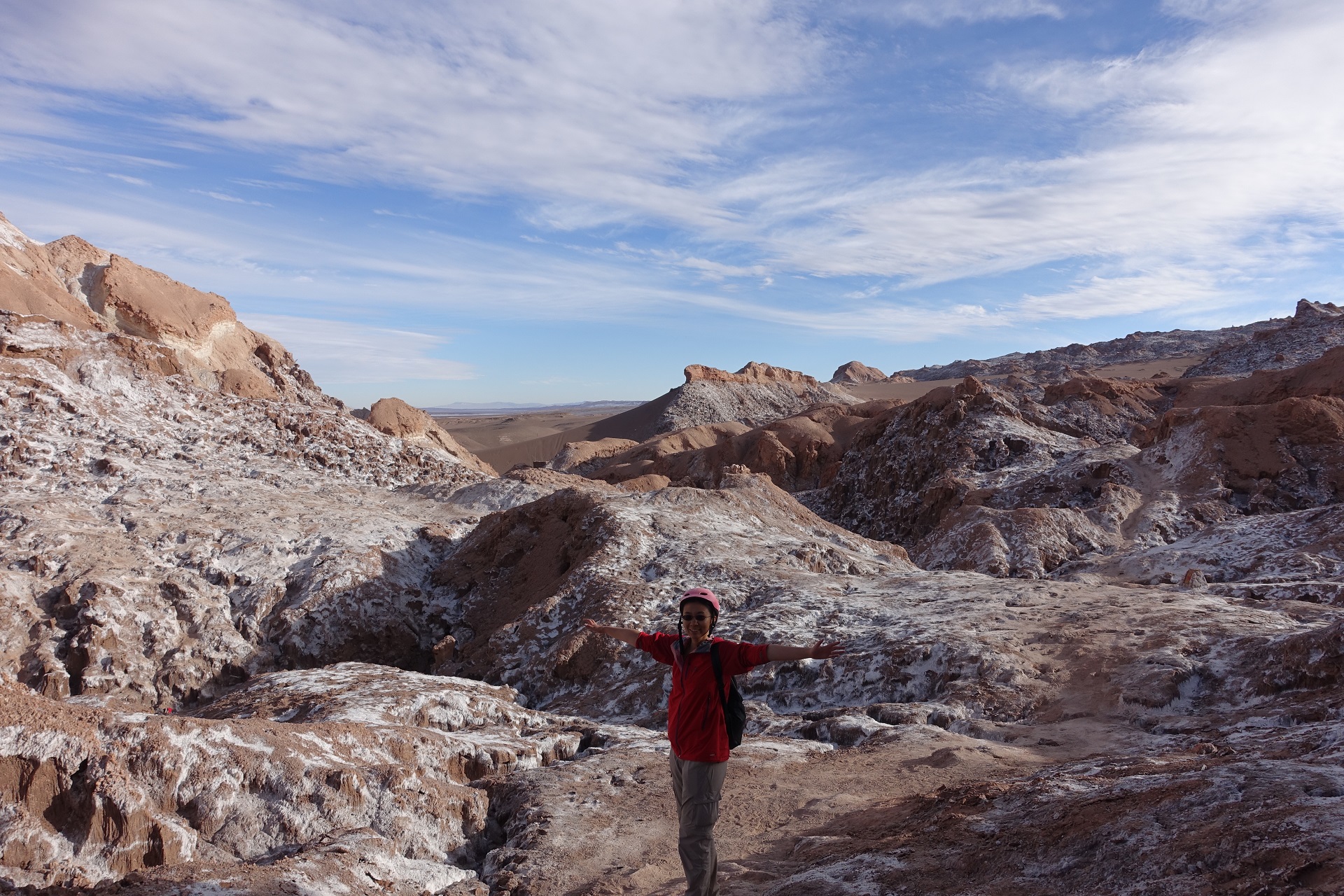 Instead we opted for an easy bicycle ride to the “Valle de la Luna”, situated in a large salt field, whose rugged landscapes really make you feel like on a different planet. It was Yang Ke’s first bicycle ride since a long time and we traveled at a leisurely pace through the hilly scenery, while the sun slowly set behind the mountain range.