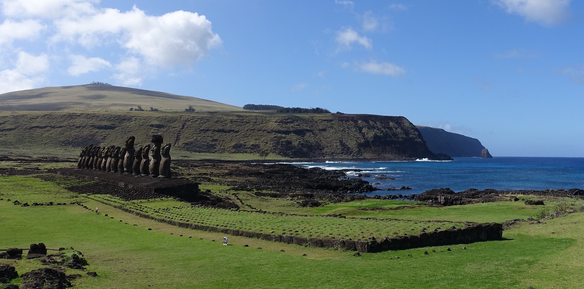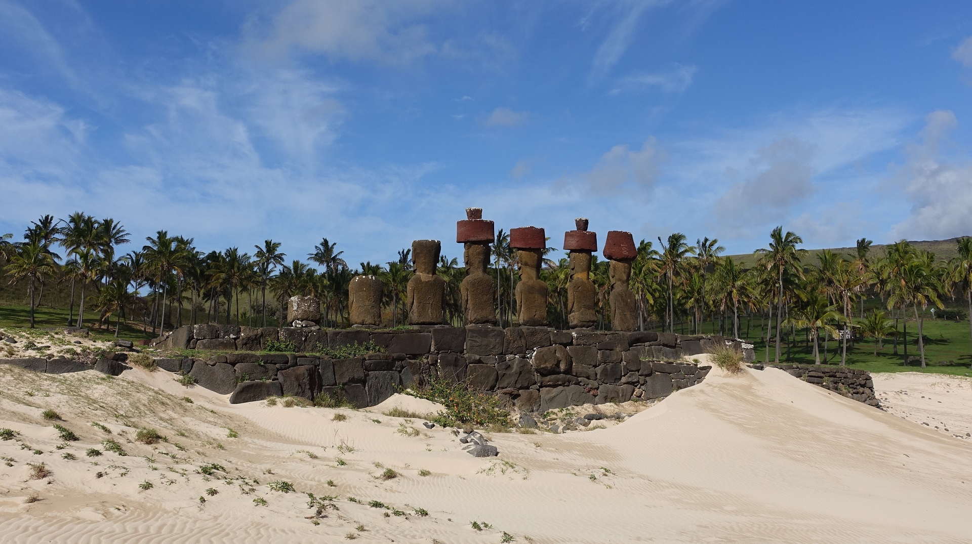 The biggest restoration project on the island has been on one of the major Ahus, founded by a Japanese tycoon, resulting in a spectacular sight of 15, quite distinct Moais.