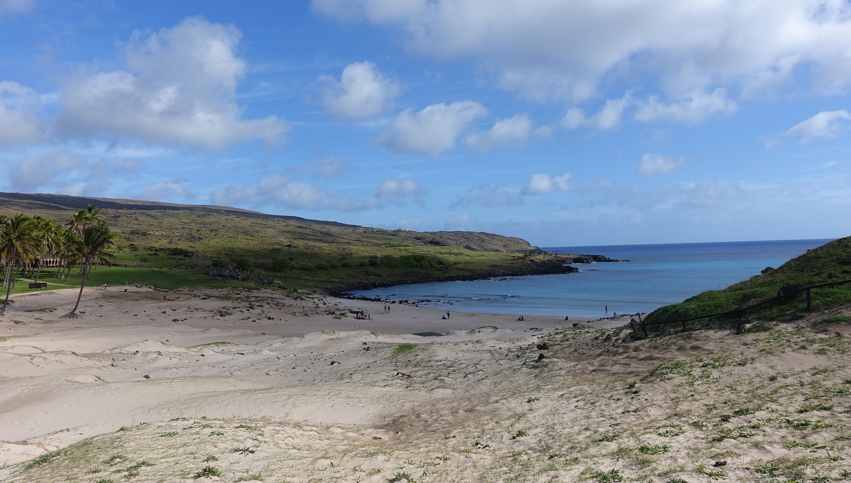 We spent another day on our own with a rented jeep and had a great day re-visiting some sites and exploring a few others. Like the island’s only sand beach, which, of course, also comes with a nice set of Moai.