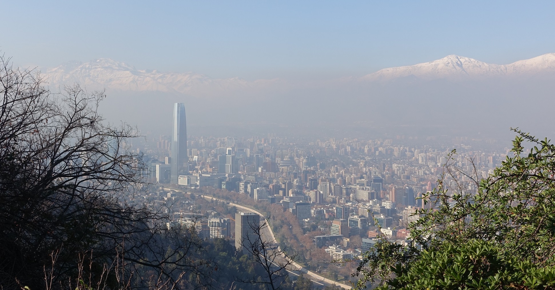 After a depressive day with the embassy, we were greeted the next day by a beautiful (and rare!) blue sky, thanks to a previous rain clearing up the pollution. We took the opportunity to hike up the central hill Cerro San Cristobal, a large nature reserve with nice views on Santiago and its Gran Torre – the (creatively named) largest skyscraper in South America.