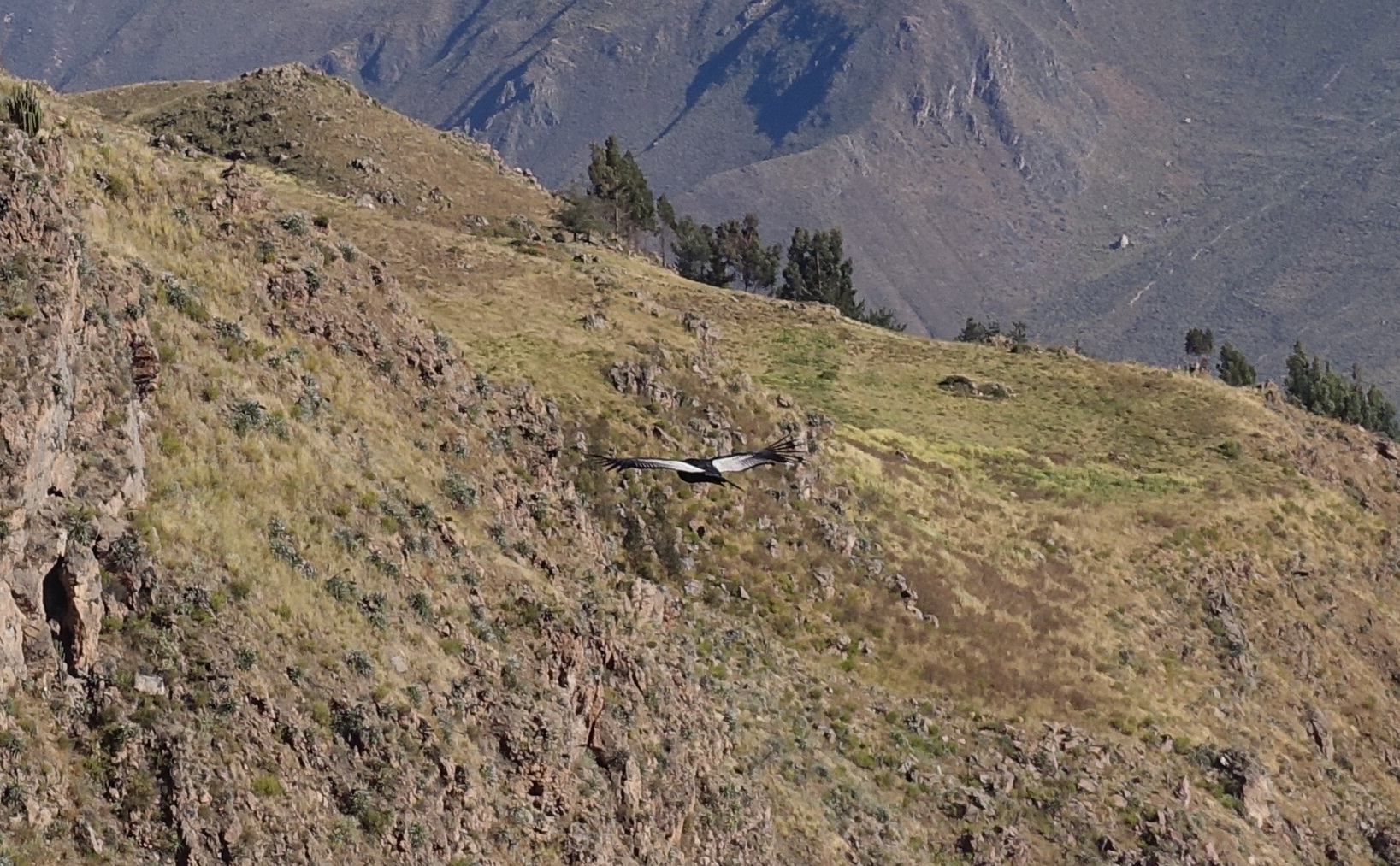 We caught a few young condors on the way, but the main target was the “Cruz del Condor”, where thermal conditions are optimal and in winter nearly every day condors are enjoying the warm updrifts in the morning. And we got not disappointed. Initially there were mostly brown = young condors, later joined by the older, black condors with their typical white neck, all in all a dozen flying at the same time.